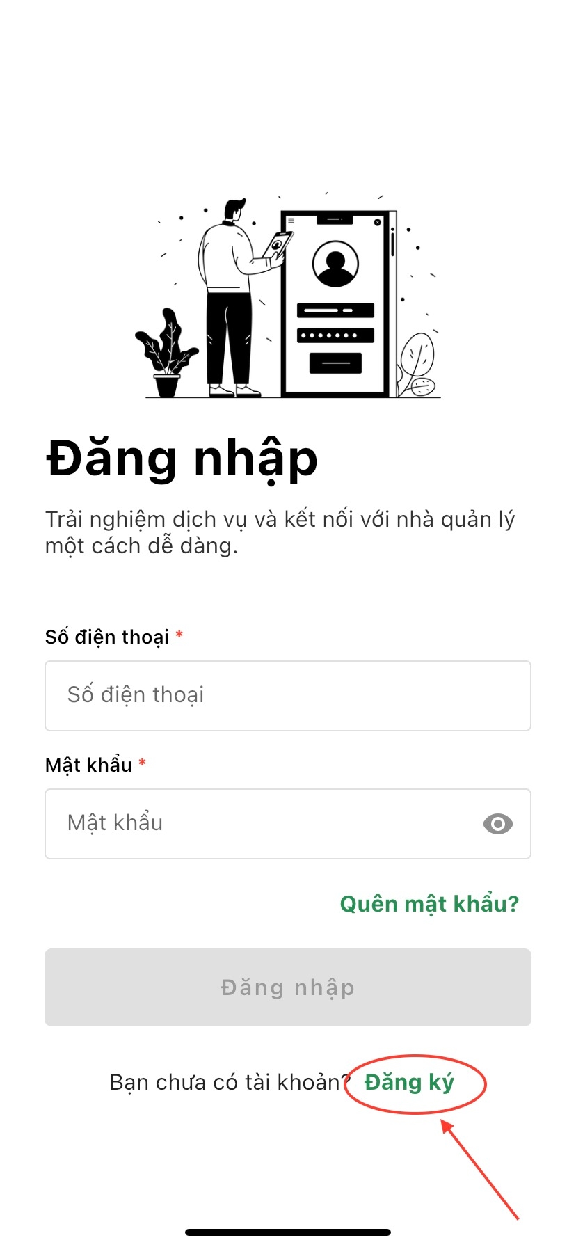 Bước 1: Tại màn hình ấn nút Đăng ký