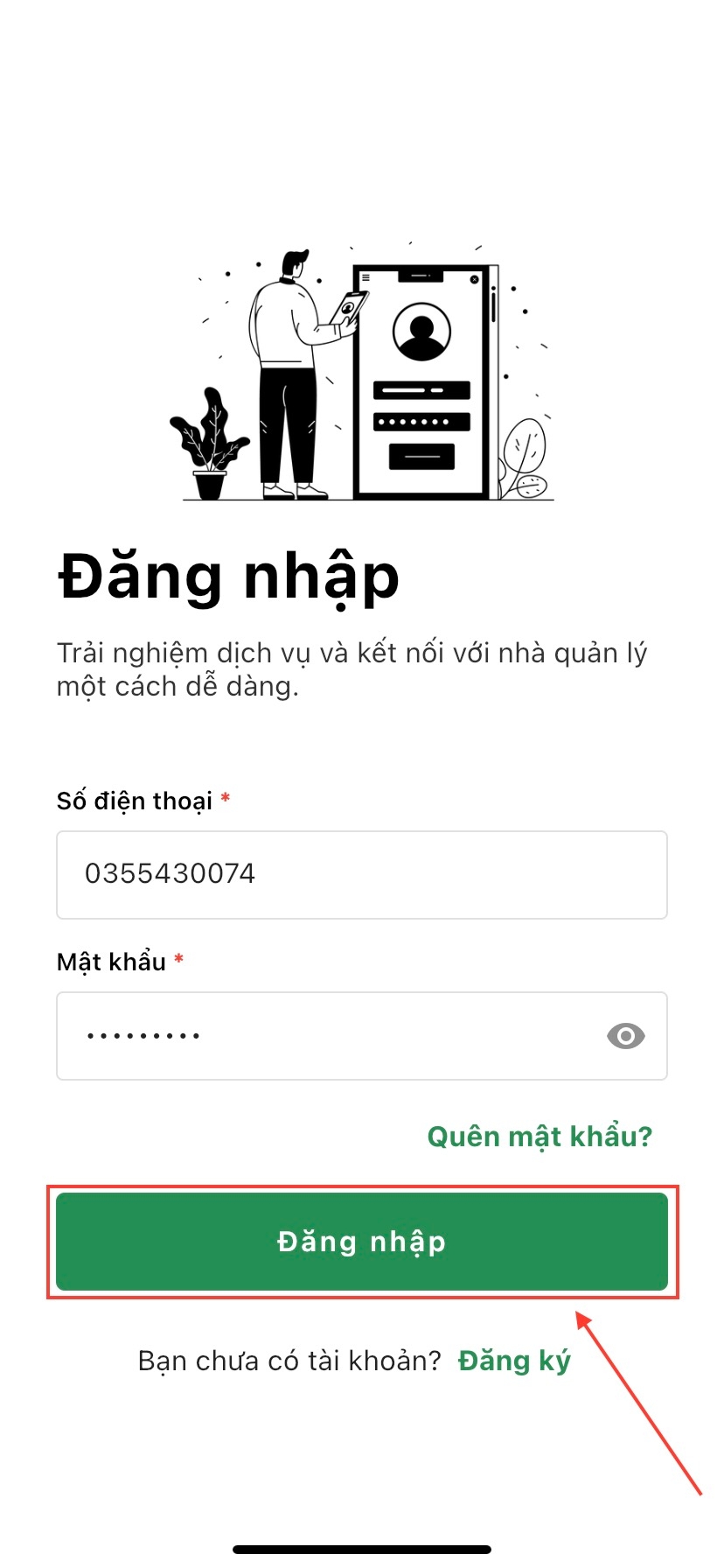 Số điện thoại: Nhập số điện thoại mà bạn đã đăng ký tài khoản