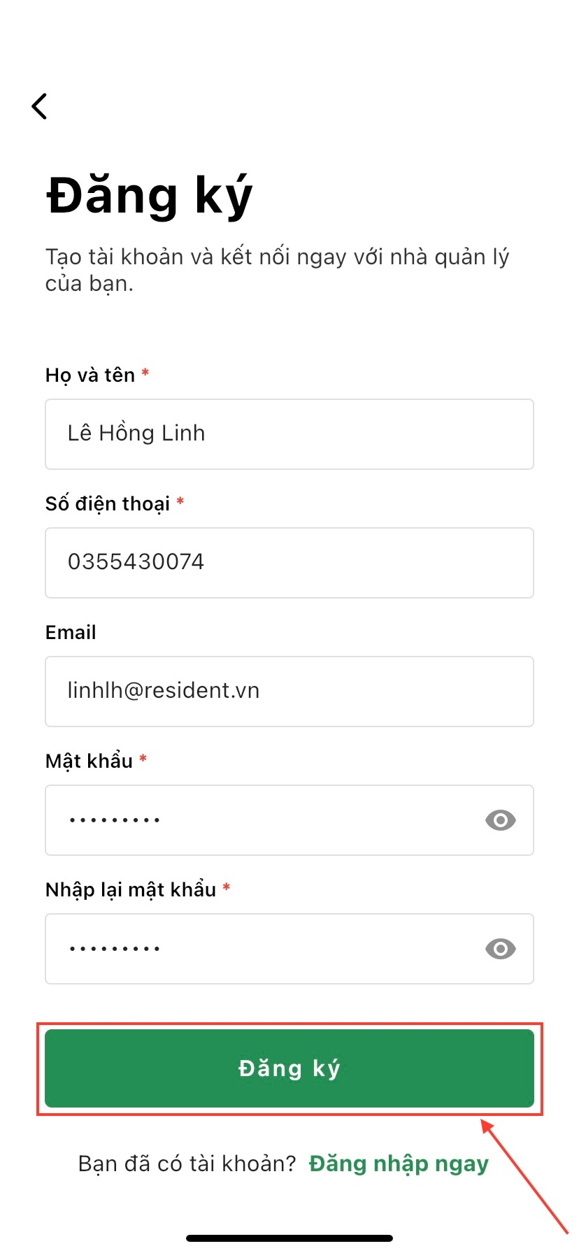 Bước 3: Ấn nút Đăng ký để xác nhận thao tác đăng ký tài khoản