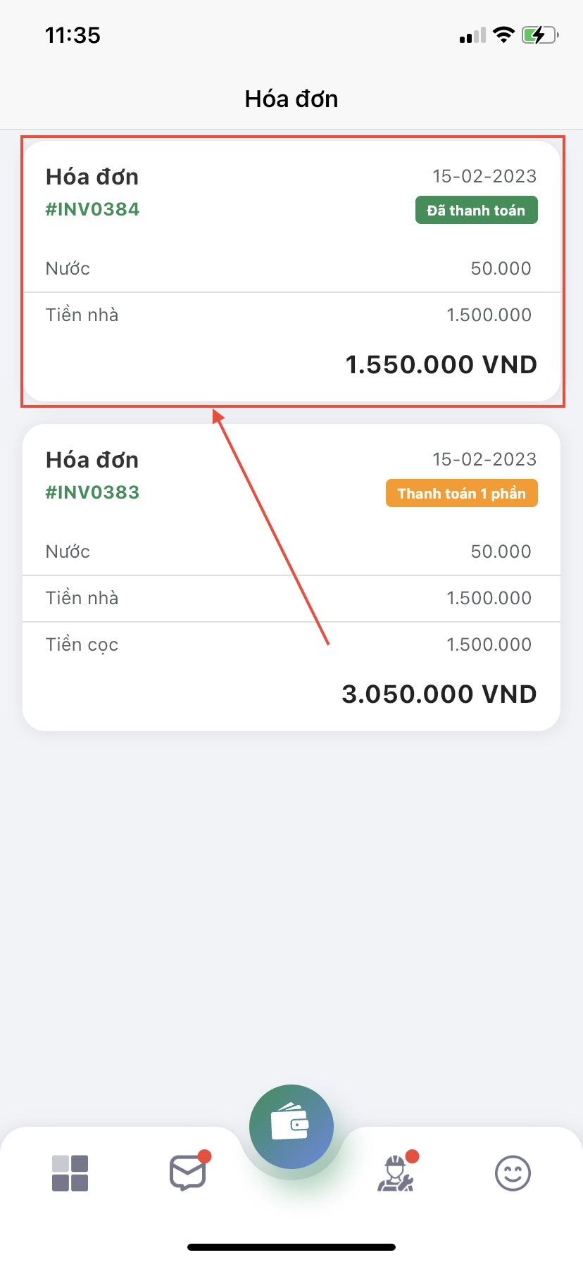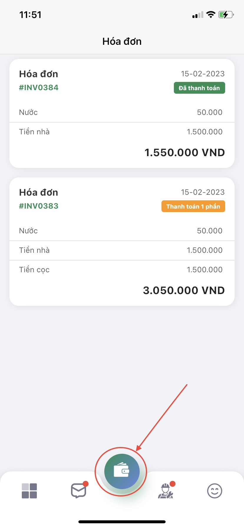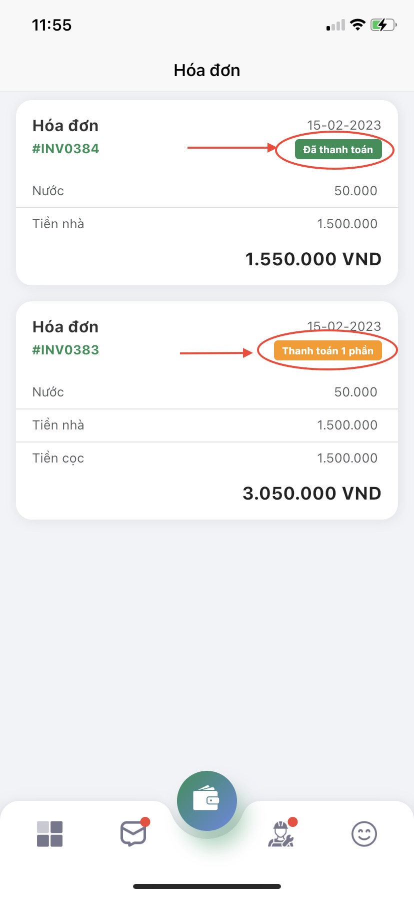 Tại đây, hệ thống đã hiển thị danh sách Đề nghị thanh toán của bạn qua các tháng. Đề nghị thanh toán được phân theo trạng thái: Chưa thanh toán, Thanh toán 1 phần, Đã thanh toán để bạn theo dõi tình trạng thanh toán Đề nghị thanh toán của mình.