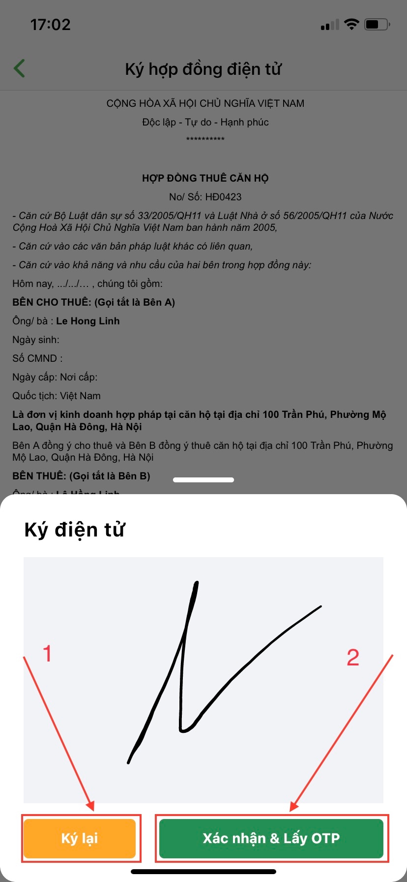 Lúc này màn hình ký hợp đồng điện tử sẽ hiển thị, bạn hãy xem kỹ các điều khoản có trong hợp đồng trước khi ký hợp đồng nhé.