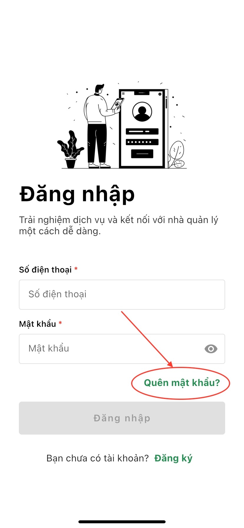 Bước 1: Tại màn hình đăng nhập, ấn nút Quên mật khẩu?