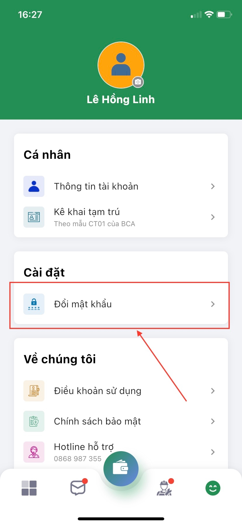Bước 2: Ấn chọn Đổi mật khẩu