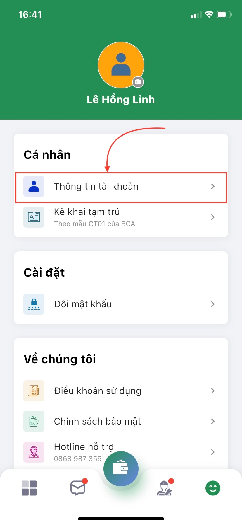 Bước 2: Bạn ấn chọn Thông tin tài khoản